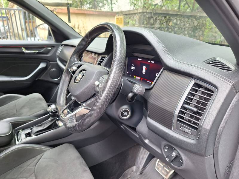 2023 SKODA KODIAQ SPORTLINE 2.0 TSI AT (PANAROMIC SUNROOF) INDIVIDUAL REGISTERED VALID INSURANCE SECOND OWNER PETROL VERSION AUTOMATIC TRANSMISSION DRIVEN 28000 KMS IN MOON WHITE COLOUR. CAR IS FULLY LOADED WITH BUTTON START/STOP CLOTHES SEATING WITH BLACK INTERIOR DISPLAY SCREEN AIRBAGS REVERSE PARKING CAMERA AND PARKING SENSORS NAVIGATION. CAR IS FULLY MAINTAINED AND SERVICED WITH AUTHORIZED SHOWROOM ONLY WITH ALL SERVICE RECORDS AVAILABLE. CAR IS IN EXCELLENT CONDITION.