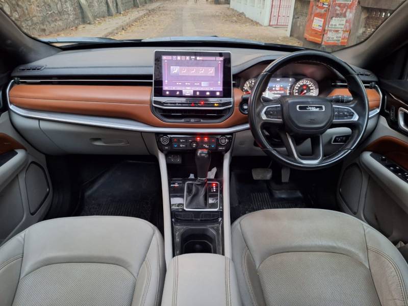 2023 NEW SHAPE JEEP COMPASS LIMITED (O) AT. (PANAROMIC SUNROOF) PETROL VERSION AUTOMATIC TRANSMISSION. SINGLE OWNERSHIP INDIVIDUAL REGISTERED VALID INSURANCE. DRIVEN 27000 KMS IN BRILLIANT BLACK COLOUR. CAR IS FULLY LOADED WITH BUTTON START/STOP DISPLAY SCREEN WITH REVERSE PARKING CAMERA AND PARKING SENSORS ALLOY WHEELS AIRBAGS LEATHER SEATING WITH BEIGE INTERIOR. CAR IS FULLY MAINTAINED AND SERVICED WITH AUTHORIZED SHOWROOM WITH ALL SERVICE RECORDS AVAILABLE CAR IS IN MINT CONDITION.