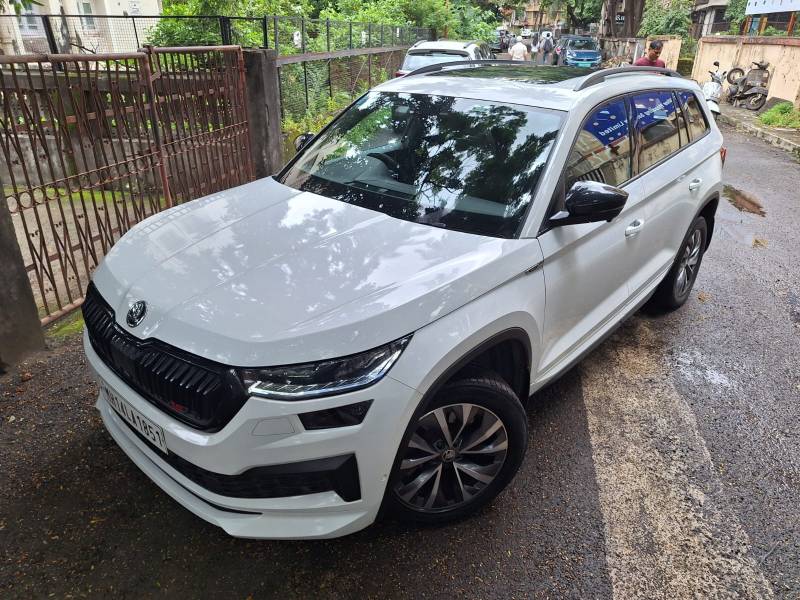 2023 SKODA KODIAQ SPORTLINE 2.0 TSI AT (PANAROMIC SUNROOF) INDIVIDUAL REGISTERED VALID INSURANCE SECOND OWNER PETROL VERSION AUTOMATIC TRANSMISSION DRIVEN 28000 KMS IN MOON WHITE COLOUR. CAR IS FULLY LOADED WITH BUTTON START/STOP CLOTHES SEATING WITH BLACK INTERIOR DISPLAY SCREEN AIRBAGS REVERSE PARKING CAMERA AND PARKING SENSORS NAVIGATION. CAR IS FULLY MAINTAINED AND SERVICED WITH AUTHORIZED SHOWROOM ONLY WITH ALL SERVICE RECORDS AVAILABLE. CAR IS IN EXCELLENT CONDITION.